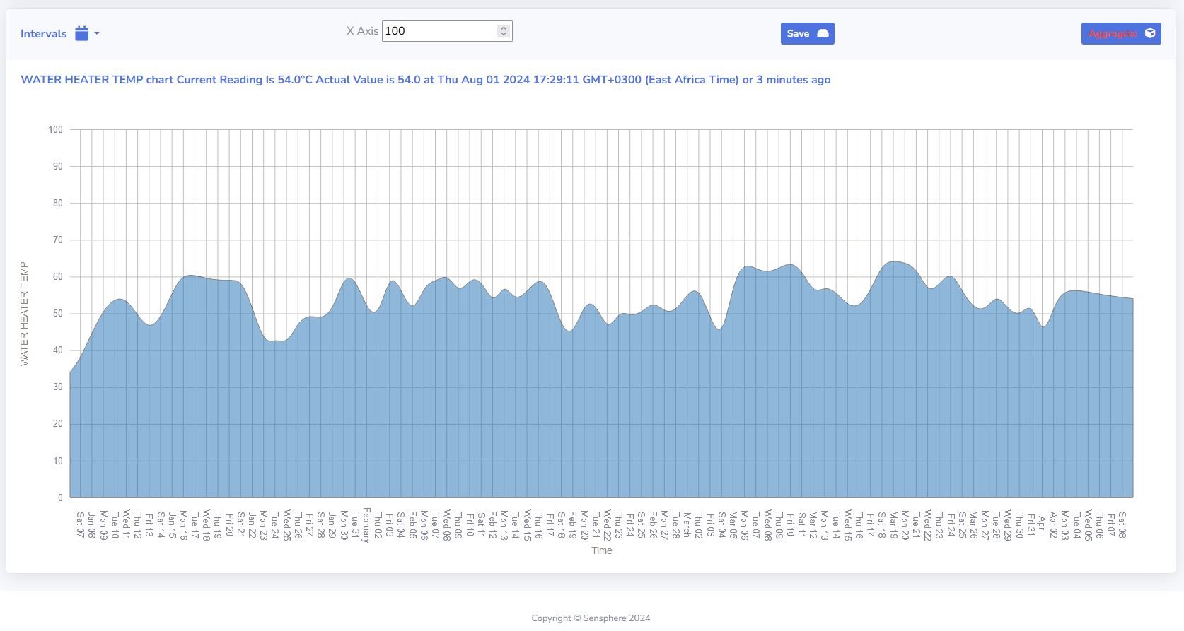 Based on the data collected, alert messages and actions may be triggered if a specified threshold is achieved i.e. turn on water pump if the water tank level is below 30% and turn the water pump off if the water level is above 95%.