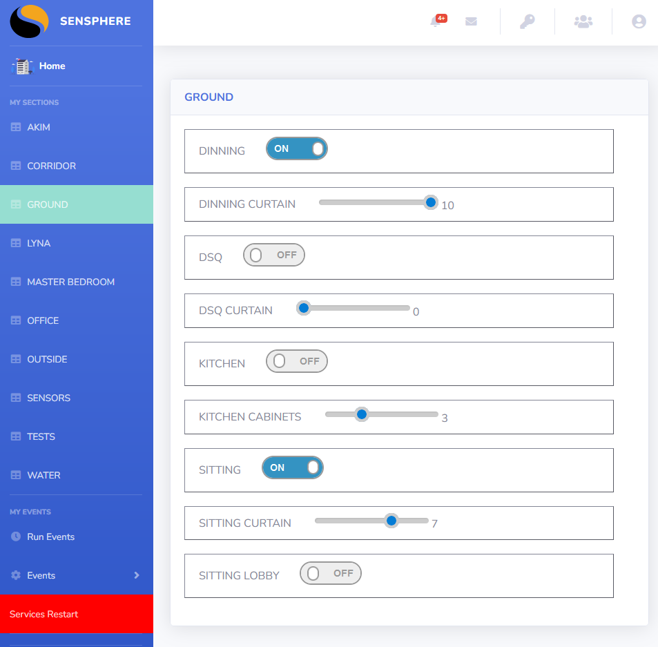 User can set and get alerts on events running or on a set threshold being sensed by the data sensors i.e. an alert may be set up and sent when water level reaches below 30%.